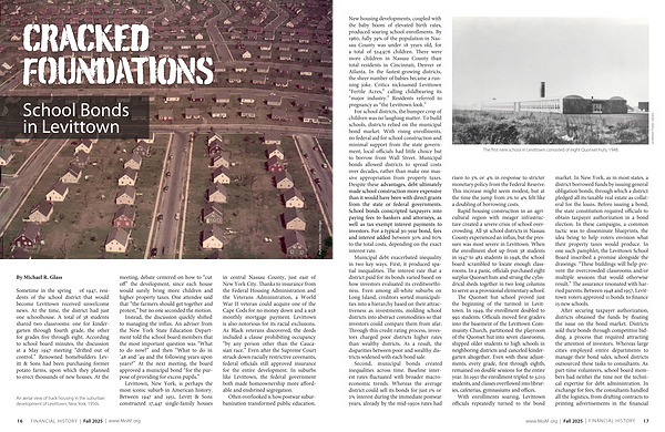 Sometime in the spring of 1947, residents of the school district that would become Levittown received unwelcome news. At the time, the district had just one schoolhouse. A total of 38 students shared two classrooms: one for kindergarten through fourth grade, the other for grades five through eight. According to school board minutes, the discussion at a May 1947 meeting“ drifted out of control.” Renowned homebuilders Levitt & Sons had been purchasing former potato farms, upon which they planned to erect thousands of new houses. At the