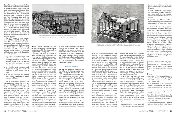 Hager, Alan V.“ The Tidelands Oil Controversy: The Prize and the Responsibility.” Natural Resources and Environment Vol. 10, No. 1. Summer 1995.