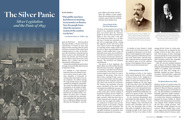 In October of 1893, Charles S. Smith wrote in the North American Review:“ In my judgement [ the panic ] is to be attributed to unwise legislation with respect to the silver question; it will be known in history as the‘ Silver Panic,’ and will constitute a reproach and an accusation against the common sense, if not the common honesty, of our legislators who are responsible for our present monetary laws.”
