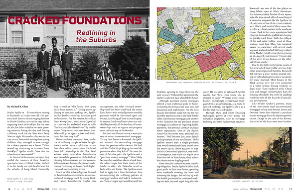 Although purchase money mortgages offered a non-traditional path to homeownership, the terms of the loan were still precarious and exploitative. For the next decade, the Spellers made not one but two monthly payments: one to the bank for the older conventional mortgage and another to the Tedeschis for the purchase money mortgage. In addition to requiring double payments, the personal contract included harsh stipulations. One of the clauses stated that the entire sum, principal and interest,“ shall become due... after default in the payment of any installment.” If the Spellers missed even a single payment, they would immediately have to fork over the entire $ 3,025( about $ 33,000 in 2026 dollars). One missed paycheck, one medical emergency, one major car repair away from the risk of foreclosure, their suburban dream sat on fragile ground.